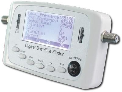Прибор позволяет ввести нужные параметры транспондера (частота, поляризация и .тп.) Сигнал показывает в двух шкалах сила и качество в процентах. Подключается в разрыв коаксиального кабеля между ресивером и конвертором, питается от ресивера. Имеет встроенную память и предустановленные настройки некоторых спутников.