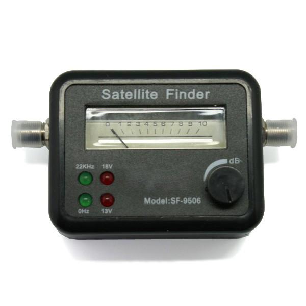 Для самостоятельной установки спутниковых антенн чаще всего используется самый простой прибор — стрелочный сатфайндер. Так же бывают модификации с индикаторными или цифровыми дисплеями, но по сути своей являются приборами одного класса. Такой прибор для настройки спутниковых антенн имеет два маркированных гнезда для подсоединения телевизионного коаксиального кабеля от приемной головки и к спутниковому приемнику. Такое включение в цепь прибора для настройки спутниковых антенн дает возможность измерить качество принимаемого сигнала. И путем изменения положения зеркала антенны, крепления головок или их положения относительно всей конструкции, получить наилучший показатель уровня сигнала. Все приборы для удобства работы оснащаются звуковым сигналом, облегчающим настройку, когда условия работы не позволяют контролировать визуально экран дисплея.